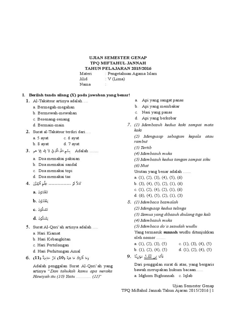 Soal Fiqih Kelas 1 Tpq : Beredar Soal Ujian Nyeleneh Madrasah Ibtidaiyah Di Blora Regional Liputan6 Com : Manfaat salat berjamaah dapat meluaskan.